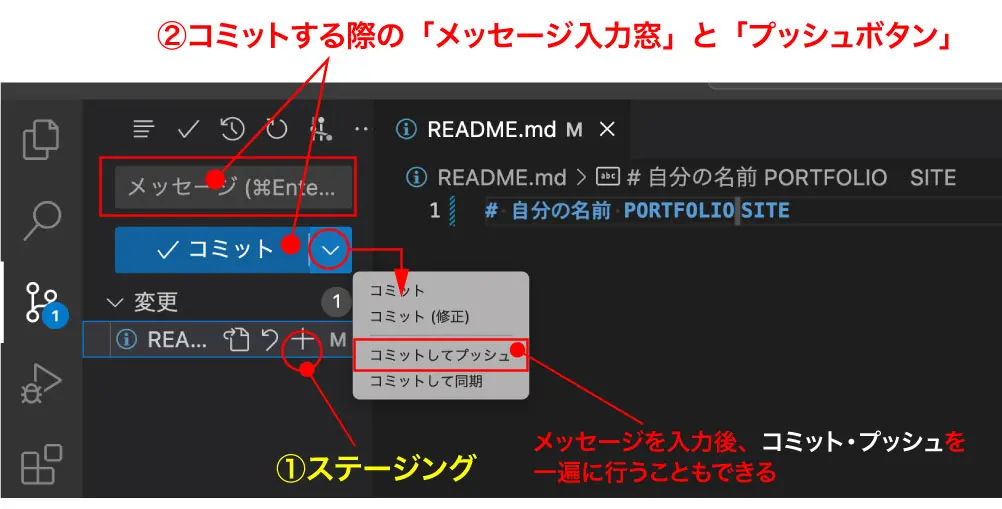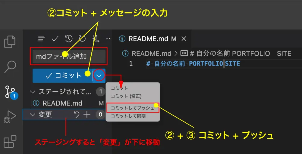 コミットは、ファイルやディレクトリの編集作業をローカルリポジトリに記録するために必要な操作のことです。