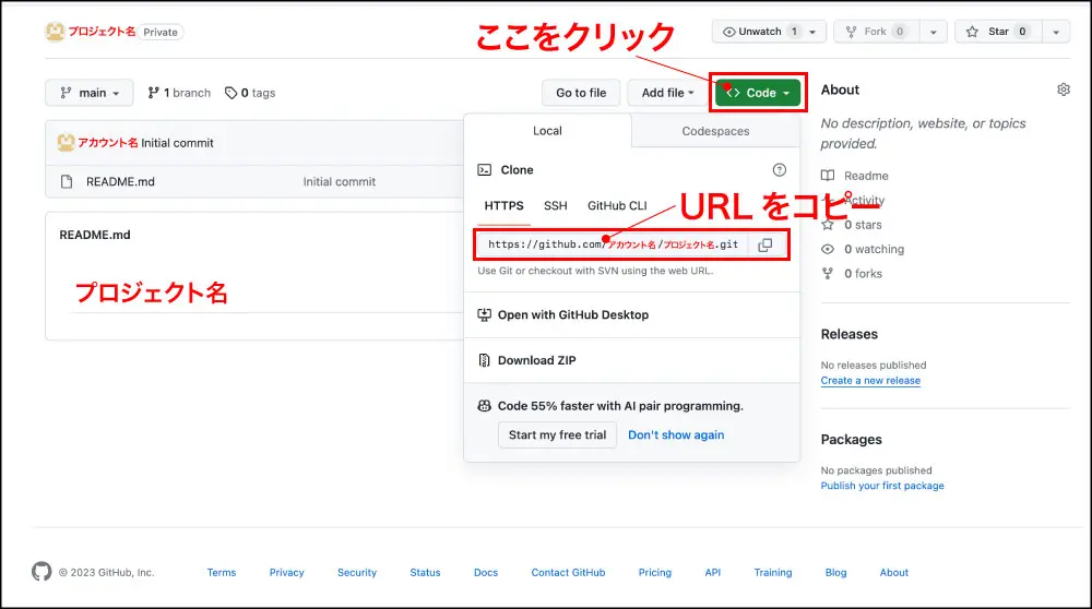 - リモートリポジトリ(Github)